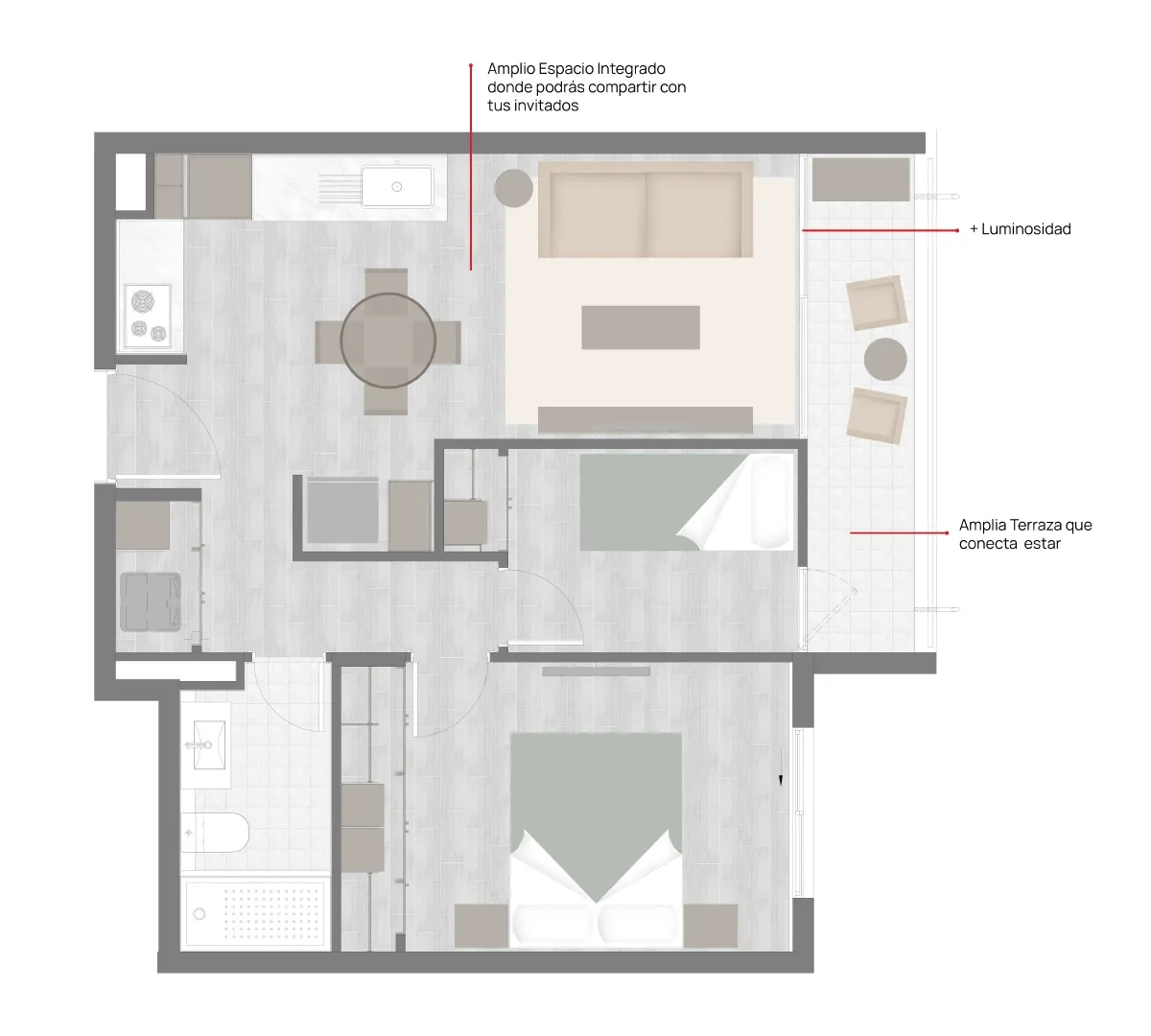 Departamentos con mejor distribución, ventanales de piso a cielo y terrazas integradas.